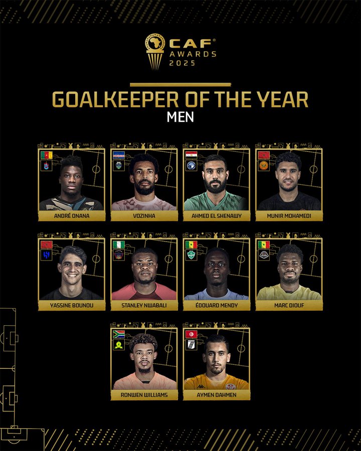 قائمة المرشحين لجائزة أفضل حارس مرمى في إفريقيا 2025